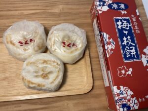 太宰府天満宮の参道名物「梅ヶ枝餅」も、マイングなら博多駅にいながらにして入手可能です。焼きたては火傷しそうになる程熱々でした。