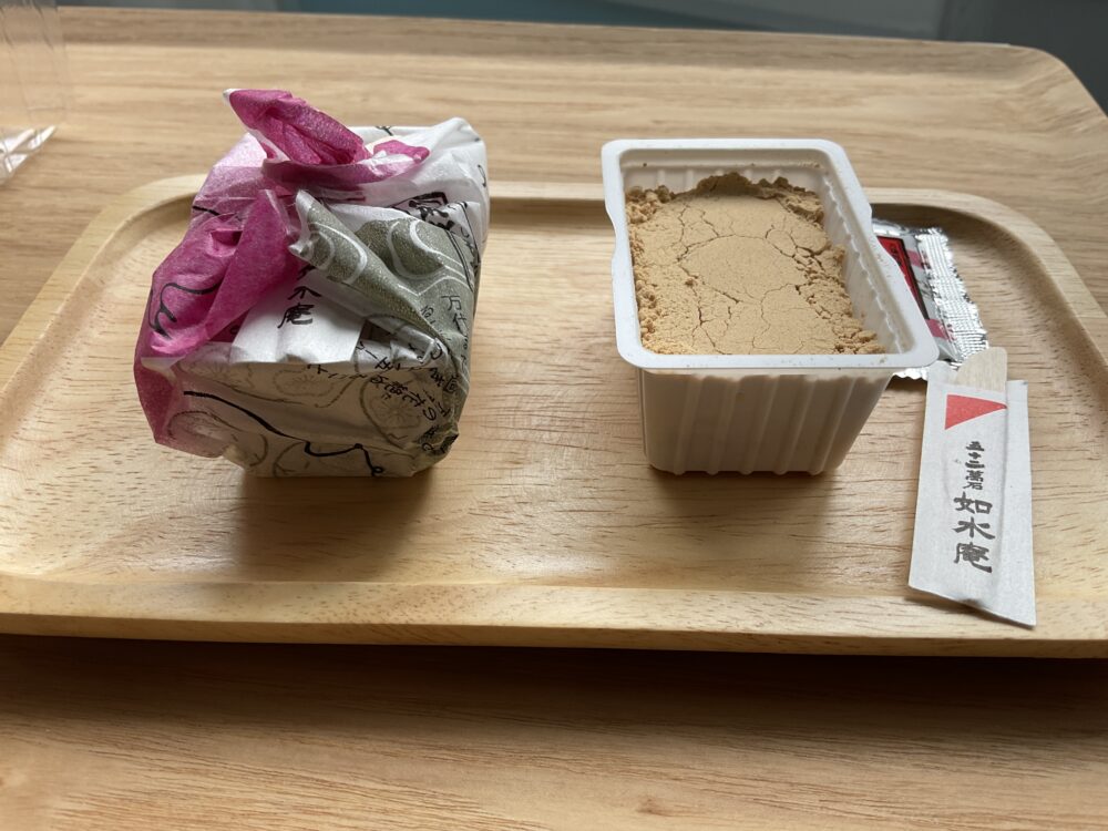 付属の黒蜜をいきなりかける前に、まずはお餅ときな粉だけで一口食べてみてください。皮むき大豆ならではの香ばしさと、ほのかな甘みがダイレクトに伝わります。