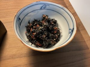 - 梅の香ひじき(ふく富): ひじきに白ごまと練り梅を和えており、全体的にしっとりとして梅の「香り」と酸味がなじんでいるのが特徴。